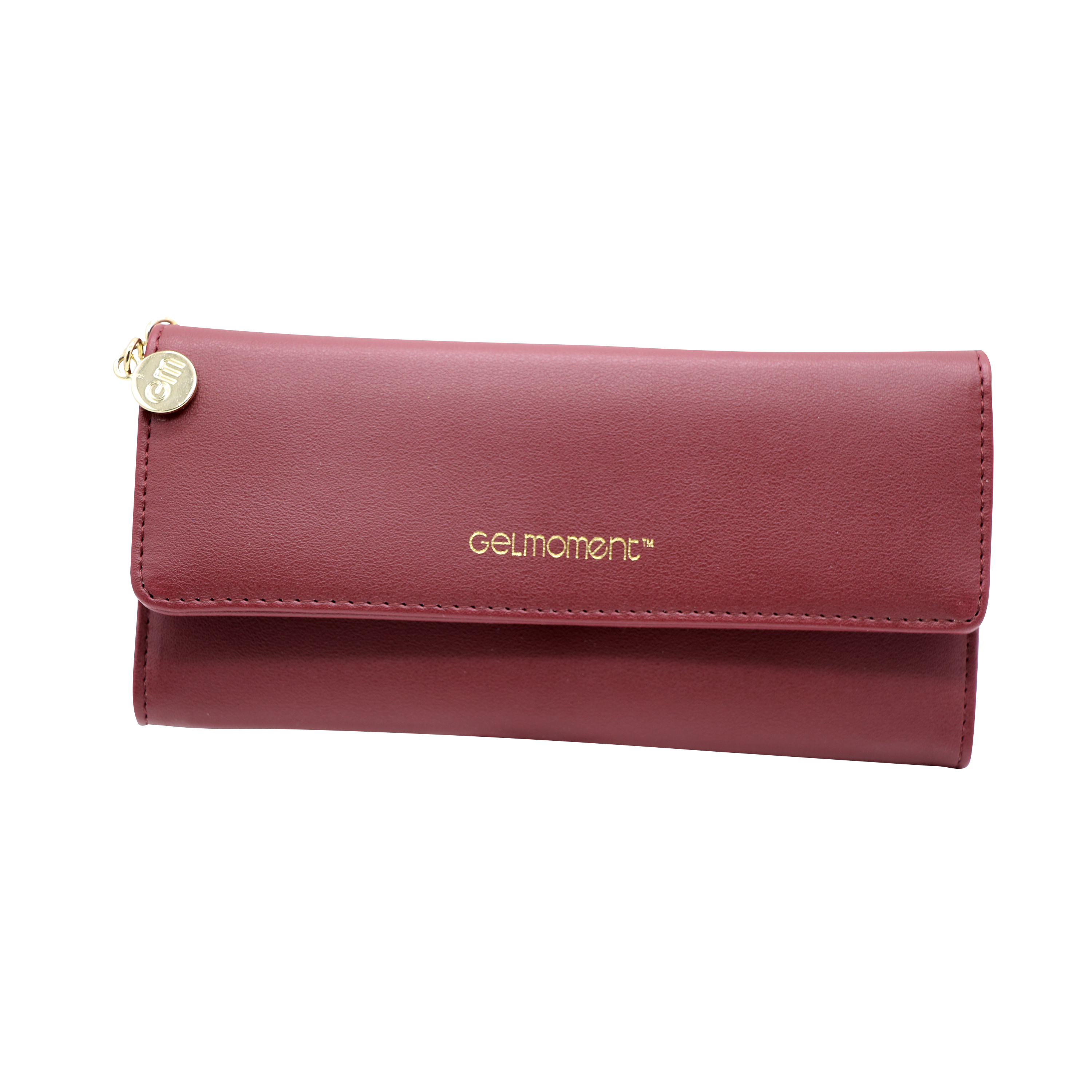 With pockets to hold everything you need, this beauitful GelMoment branded tri-fold wallet will be a conversation starter when you are out and about shopping! Featuring a shiny GelMoment logo charm and goldtone embossed logo on the front, this wallet will show the world the professional that you are!
